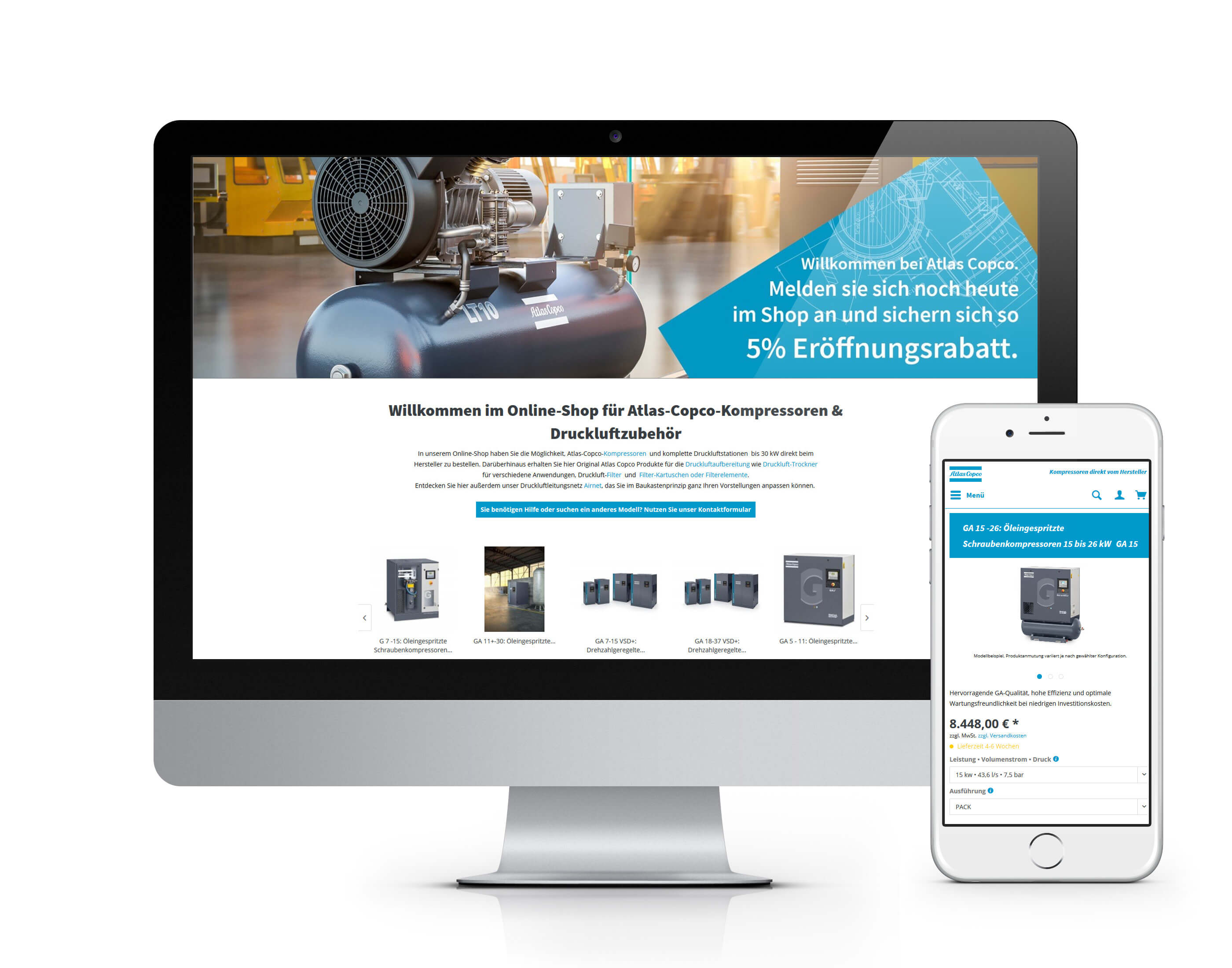 Atlas Copco ist in über 180 Ländern präsent und seit über 60 Jahren in Deutschland vertreten. Zum Kerngeschäft gehören die vier Geschäftsbereiche Kompressortechnik, Industrietechnik, Bau- und Vakuumtechnik. EXWE hilft Atlas Copco dabei, Ihre Kompressoren und das Druckluftzubehör online zu vertreiben.