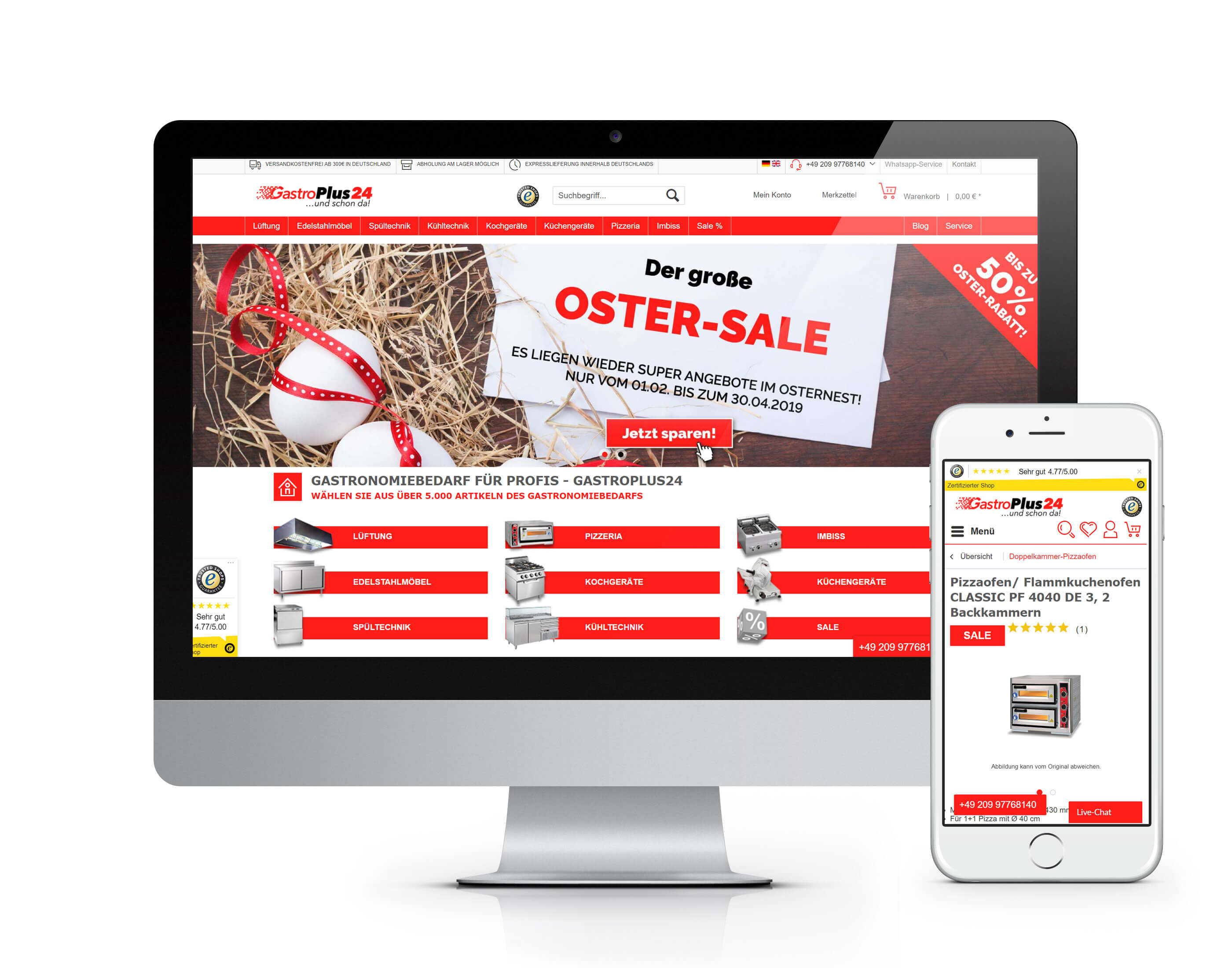 GastroPlus24 ist der Online-Shop für Gastronomiebedarf, welcher großen Wert auf kompetente Beratung und Top-Qualität legt. Die EXWE GmbH hilft als technischer Partner, die Produkte von Lüftungstechnik über Pizzeriabedarf bis hin zu kleinen und großen Gastrogeräten, optimal zu präsentieren.