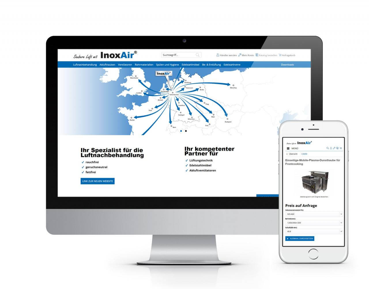 InoxAir sind Spezialisten für Luftnachbehandlung und gehören zu den Marktführern im Bereich Lüftungstechnik. Unter Einsatz mehrerer individueller B2B-Plugins der EXWE Shopware-Agentur